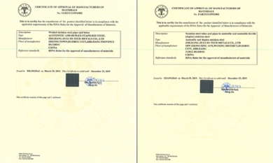 近日,公司通過RINA意大利船級社認(rèn)證。這是繼獲得CCS中國船籍社、DNV-GL挪威船級社、德國勞氏船級社、BV法國船級社、ABS美國船級社、LR英國勞氏船級社等主要船級社認(rèn)證之后,