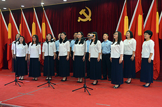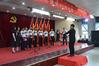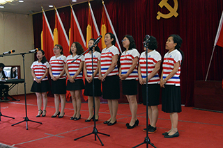 紀(jì)念暨表彰大會(huì)后,孫智憑書記和化學(xué)化工學(xué)院退休教師趙薇即興合唱了一首《長(zhǎng)江之歌》獻(xiàn)禮黨的生日。各基層黨組織也向偉大的中國(guó)共產(chǎn)黨奉獻(xiàn)了精心準(zhǔn)備的生日禮物——“愛國(guó)、愛黨、愛人民”小合唱和配樂(lè)詩(shī)朗誦。