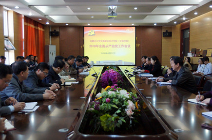為全面貫徹黨的十九大精神,大力推進學(xué)院全面從嚴(yán)治黨向縱深發(fā)展,4月11日上午,學(xué)院黨委召開全面從嚴(yán)治黨工作會議。學(xué)院領(lǐng)導(dǎo)、副處級以上干部、直屬黨支部書記、基層黨組織紀(jì)檢委員、專職紀(jì)檢干部參加會議。